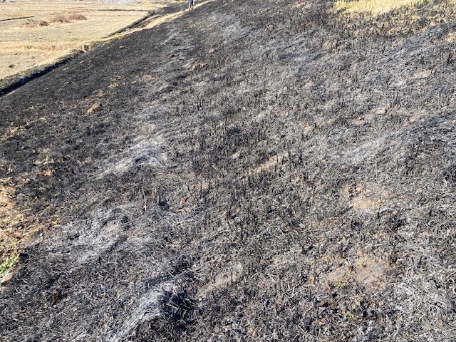 堤防土手の枯草焼き、田舎あるある。部落行事。